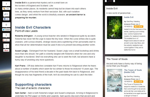 So far I’ve created an Inside Evil lens, The Tower of Souls lens and several others. I’ve linked them together. I’ve added Amazon links, a poll of favourite characters, a simple cast list and a ‘Did you know?‘ section.