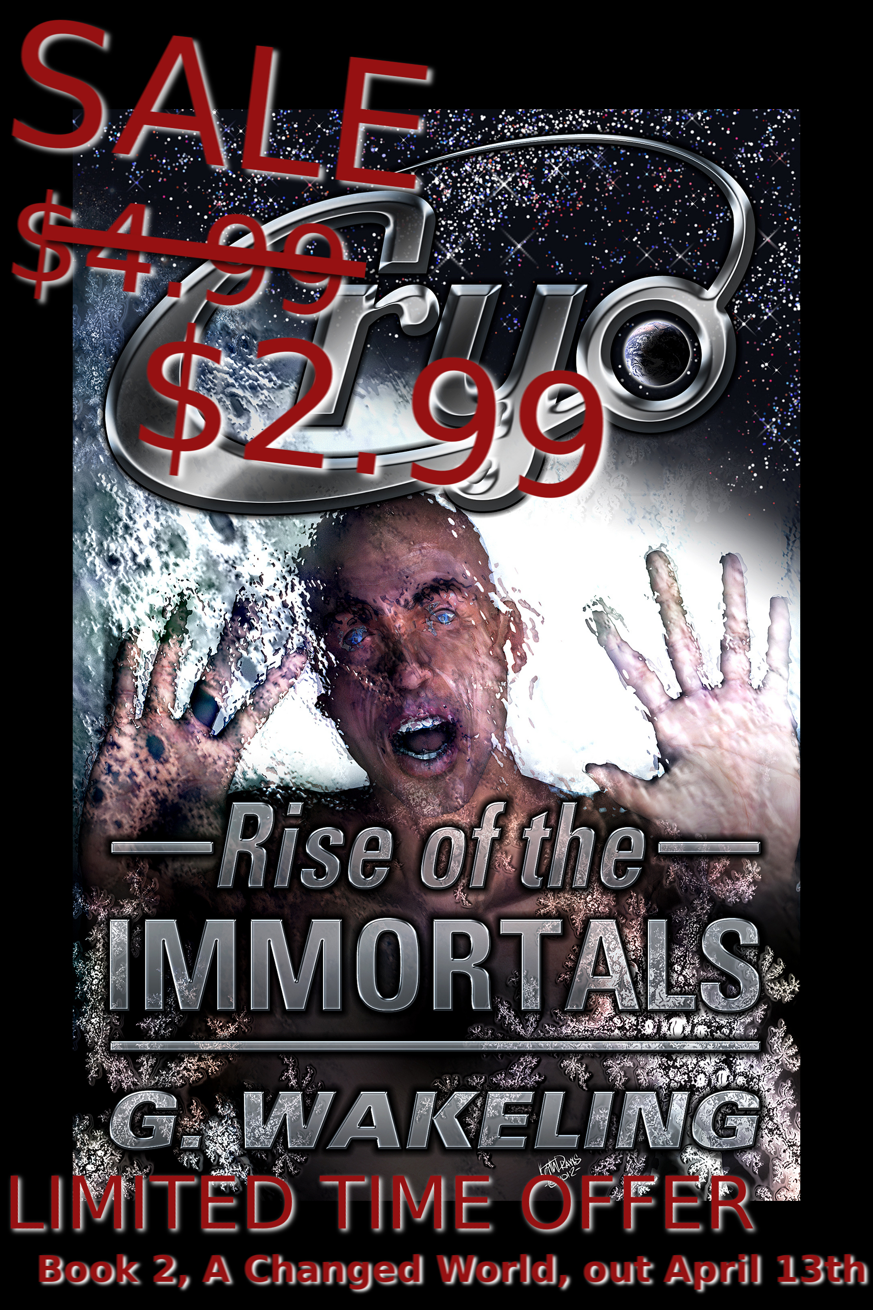 It seems like ages ago that I began to write the follow up to CRYO: Rise of the Immortals. Now, in only a couple of weeks, it’ll be released! (That’s April 13th, by the way!) In celebration, I’m not only revealing the cover, but also offering a limited time offer on Book 1 of the series. Without further ado, here’s the cover and the blurb!